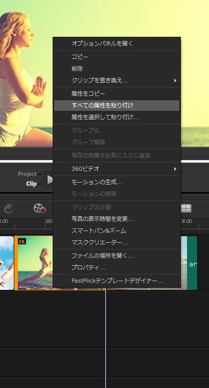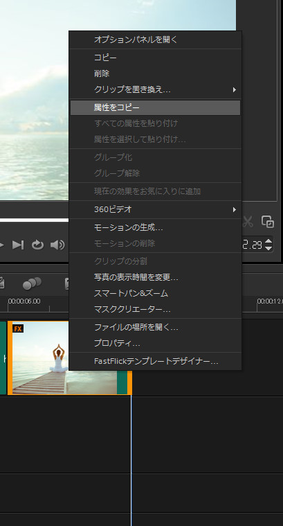 videoStudioの機能には、属性をコピーという機能が備わっています。