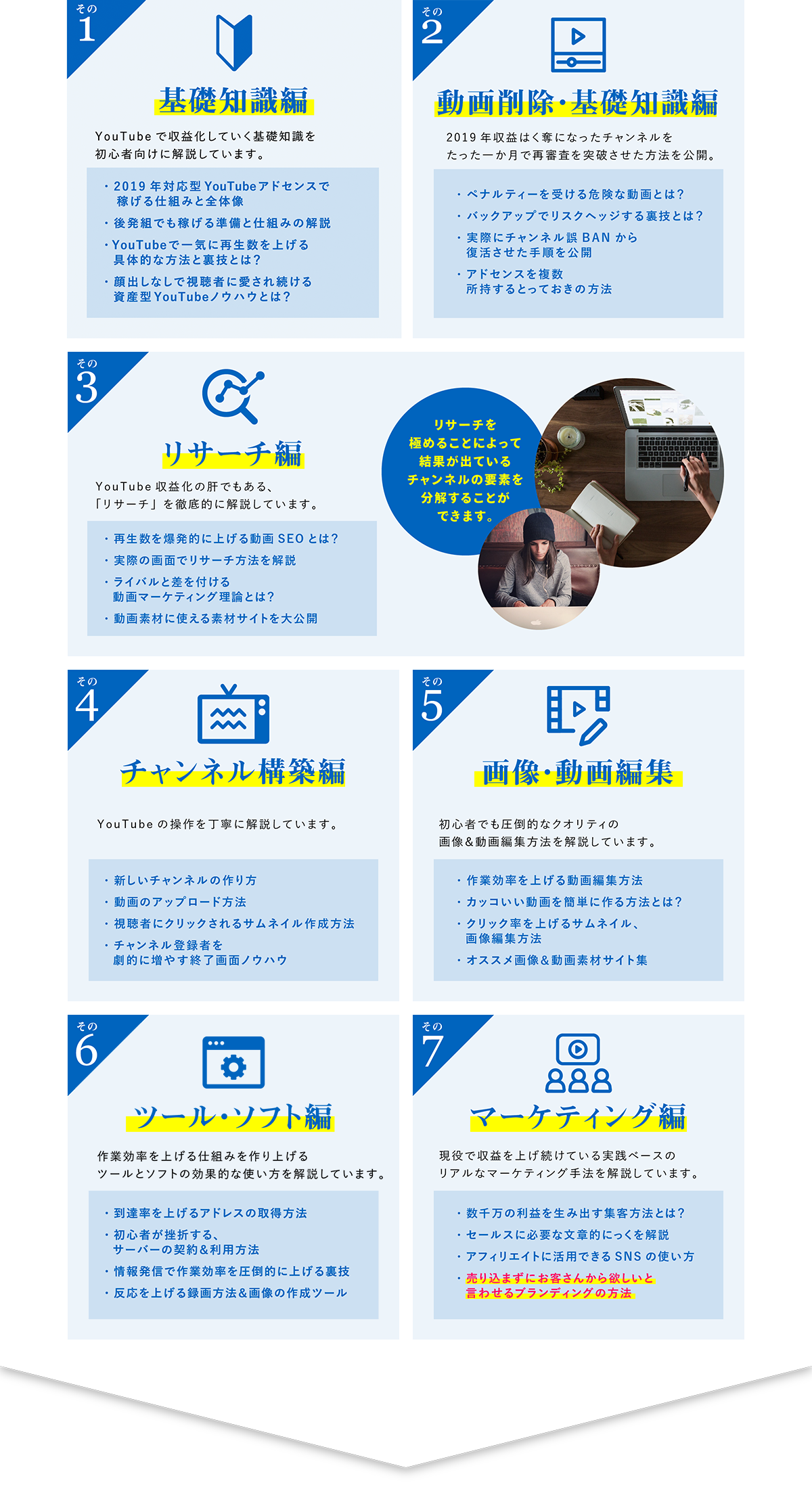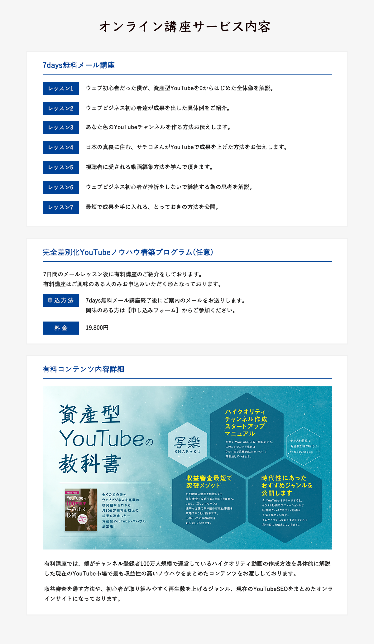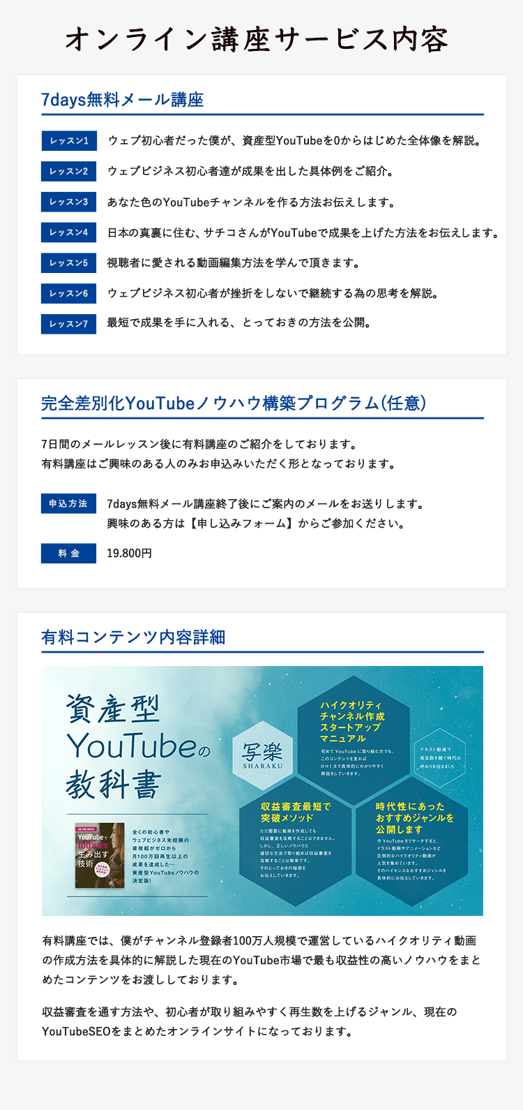 一方、写楽では裏技的な物じゃなくて、例えばYoutubeの運営側が喜ぶような動画や消されない動画など、本質となるところを教えてもらえます。
