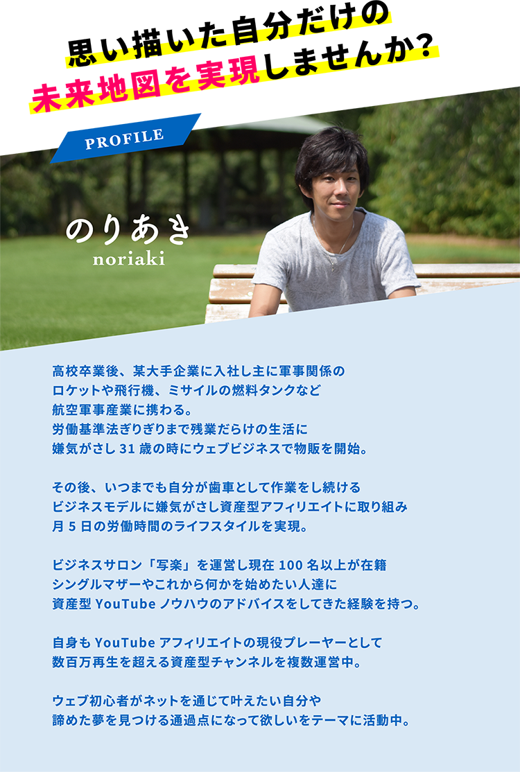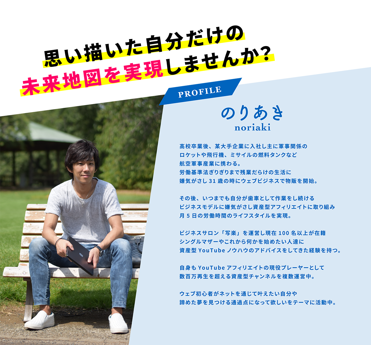 のりあきさんの、本質に基づいたアドバイスと、情報交換や切磋琢磨できるコミュニティーのおかげで月収300万円を達成することが出来ました。