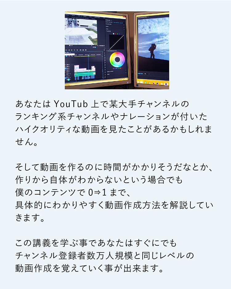 もともと、テキストスクロール動画の量産を独学で行っていました。