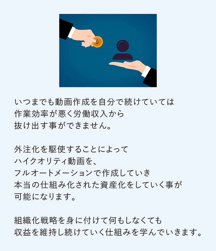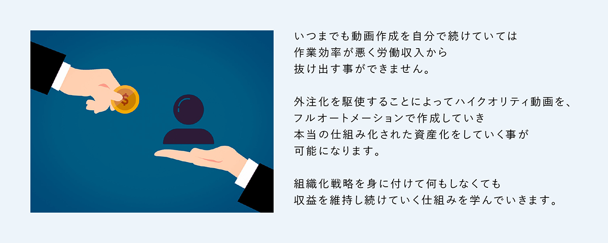 また、仕事が忙しく作業時間が確保できないと相談した時も外注化をして組織化するノウハウで作業量を減らす事ができました。